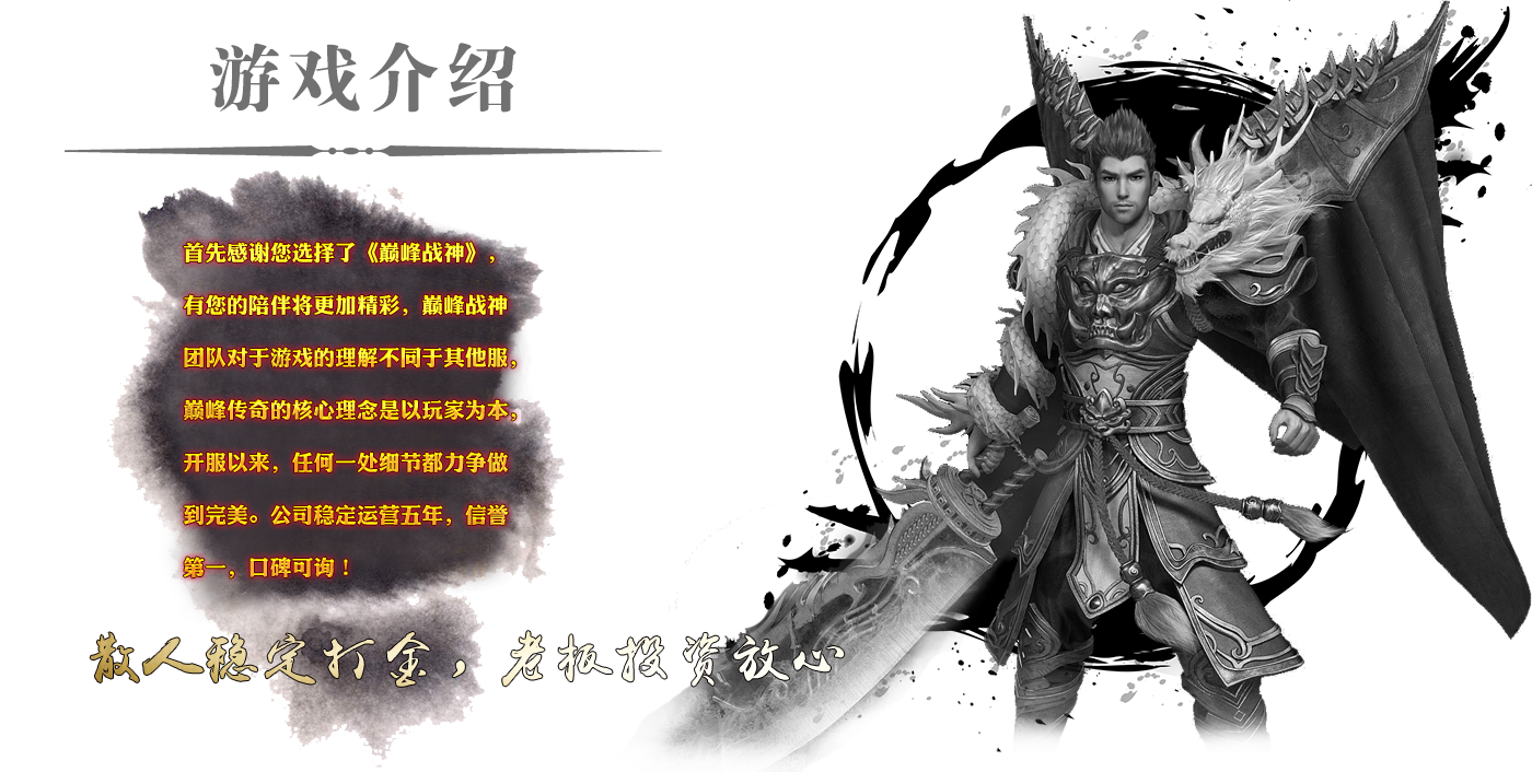 【游戏介绍】:1.80巅峰战神火龙版本,复古不花哨。轻松又耐玩,激情四射,养老必选!